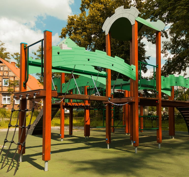Žaidimų aikštelių kompleksai iš medienos kompozito
